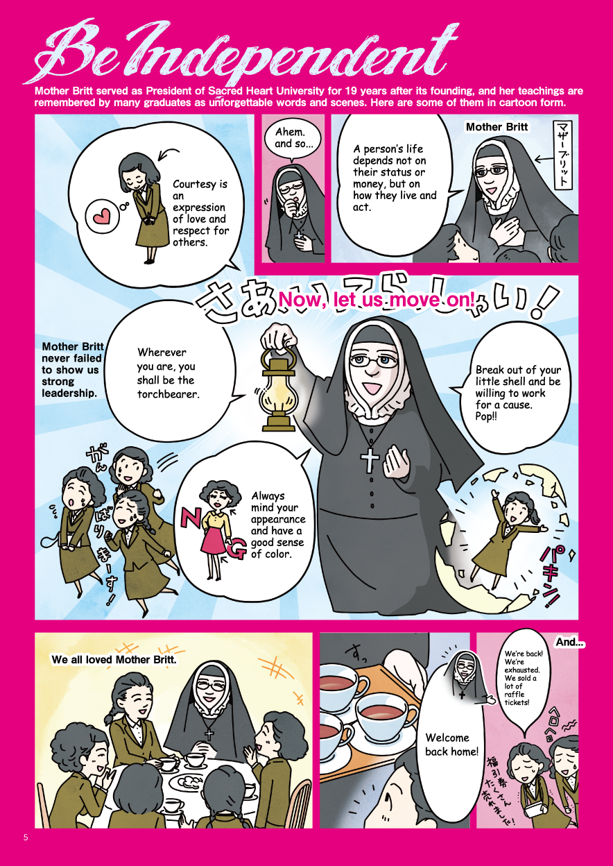 Being one of the first graduates, Mrs. Ogata said, "Mother Britt had a clear vision as to how women should be in the future which was for women to think on their own and act for the benefit of others. I was greatly influenced by this vision."