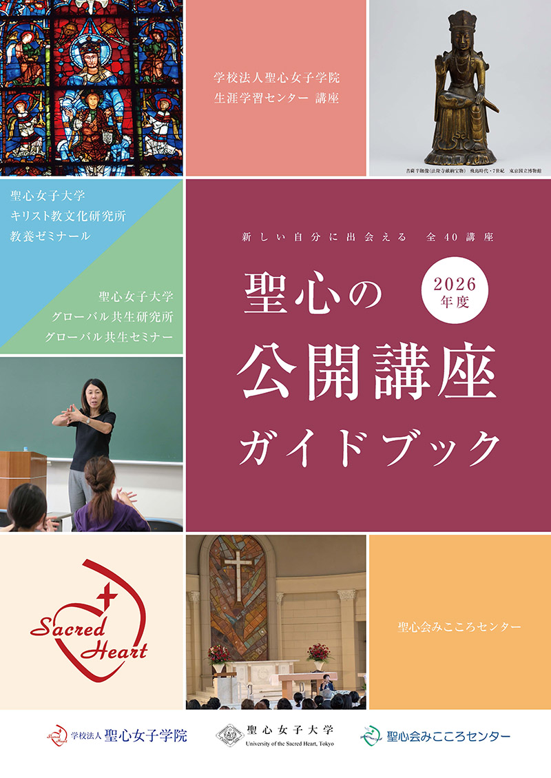 ※聖心会みこころセンターの講座が追加となりました! 各講座の1~2か月前を目途に受付を開始いたします。学校法人聖心女子学院生涯学習センター講座、キリスト教文化研究所教養ゼミナール、聖心会みこころセンター講座は各ホームページからお申込みください。ことばと文化